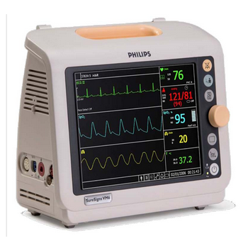 監護儀 飛利浦VM8可監護參數:標準配置參數: 心電(ECG),血壓(NIBP),血氧(SpO2),心率(HR)/脈率(PR),呼吸(Resp),體溫(Temp),有創血壓(IBP)可選配置:微流二氧...
