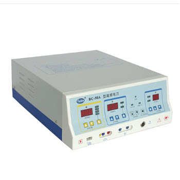 BC-50E高頻電刀產品特點:智能化主機,具有純切'混切1、混切2、單極接觸凝等功能;既可手控又可腳控;輸出功 率數字化顯示;電腦自動判斷設備及操作故障,數碼顯示故障類型,聲光報警。設有中性電...