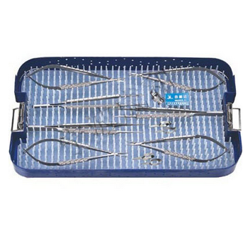 顯微外科手術器械包 HC-B801-1詳細信息: 顯微鑷15cm 0.3mm 直2把, 顯微持針鉗14cm 直1把,顯微剪14cm直1把,顯微止血夾大2只,顯微止血夾小2只,平頭沖洗針1只。配帶硅膠器...